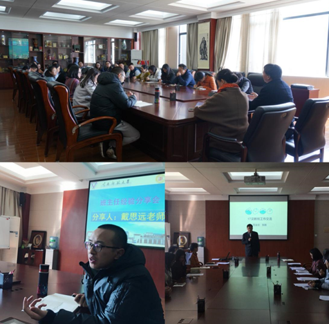 先进班集体和优秀班主任代表张鹏老师、戴思远老师、高萍老师、戴超老师分享了班级管理经验,他们从班风建设、学风建设、班级管理制度建设、突发事件处理、意识形态工作管理等方面作了精彩的经验分享。