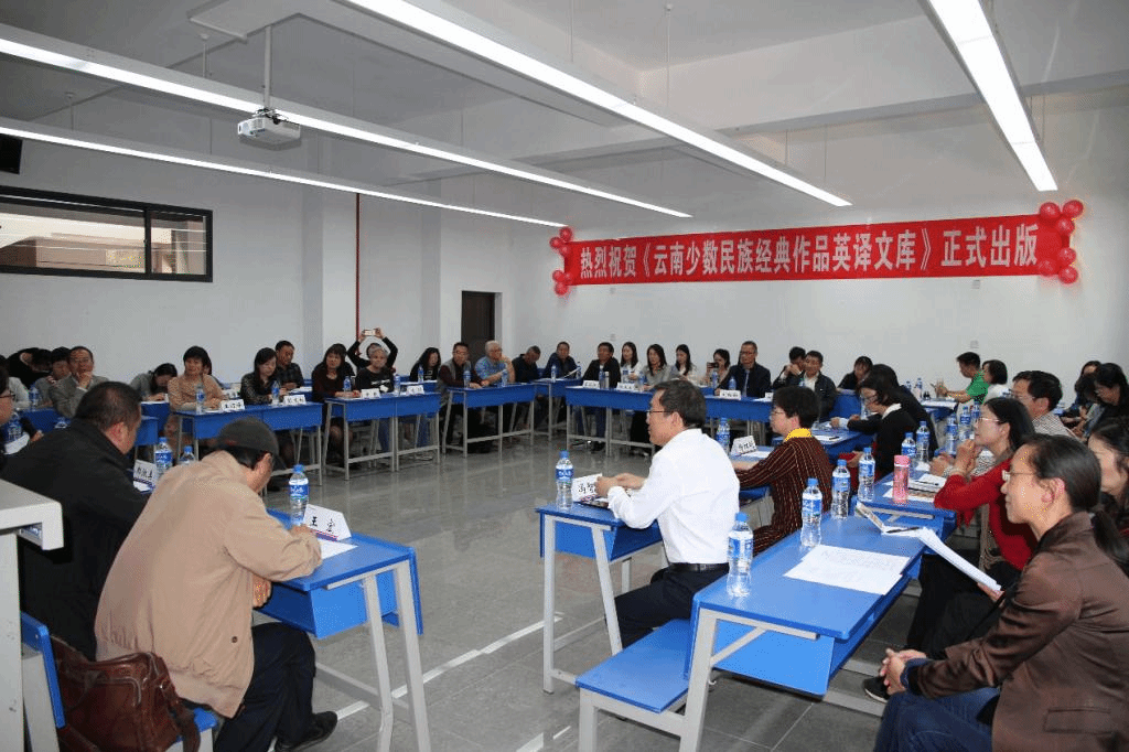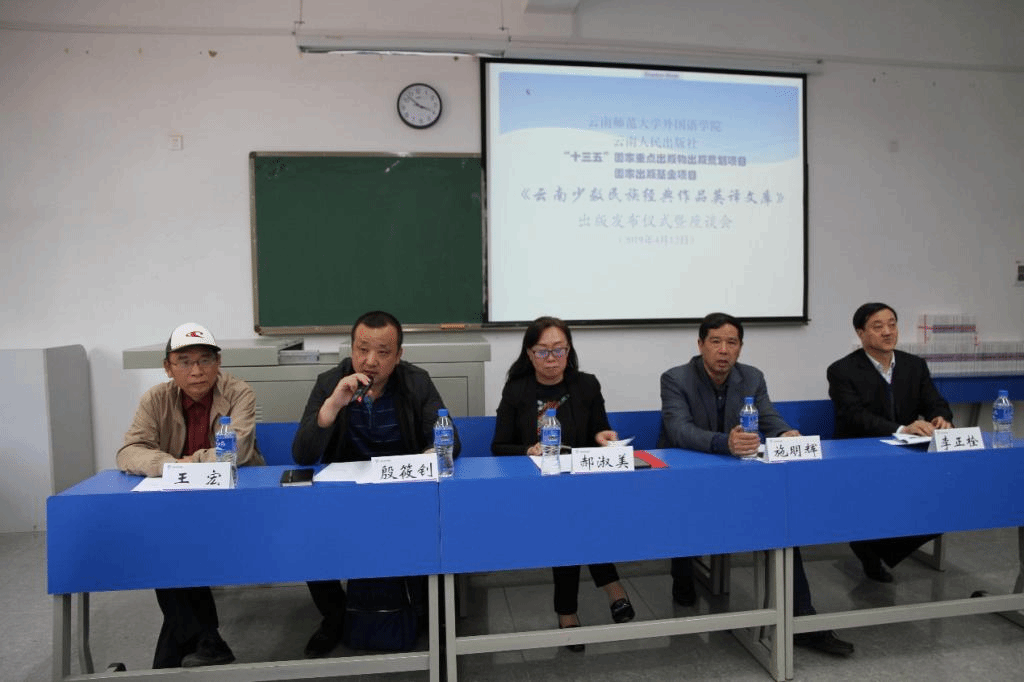 2019年4月12日下午,由云南人民出版社出版的“十三五”国家重点出版物出版规划项目、国家出版基金项目《云南少数民族经典作品英译文库》系列图书出版发布仪式在云南师范大学外国语学院成功举行。我校郝淑美副校长、云南省翻译协会施明辉会长、云南人民出版社殷筱钊副社长、全国典籍英译研究会常务副会长李正栓教授、全国典籍英译研究会副会长王宏教授,昆明理工大学、云南民族大学、云南农业大学、云南财经大学、西南林业大学、云南中医药大学等在昆高校的外国语学院领导和专家学者,以及本套丛书的译者出席了本次发布会。