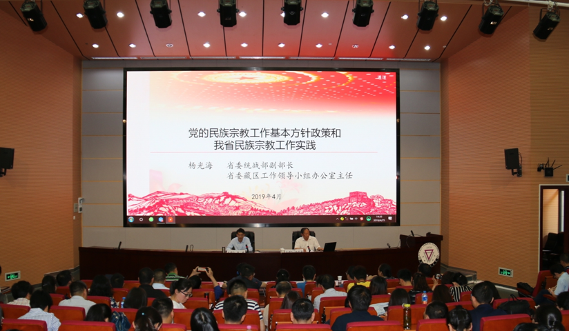 为深入学习贯彻习近平总书记关于民族宗教工作重要论述,进一步深化广大师生对党的民族宗教政策的认识,帮助师生树立正确的民族宗教观,做好抵御利用宗教对校园进行渗透和防范校园传教工作。425日下午,学校在呈贡校区中国西南对外开放与边疆安全研究中心报告厅举行民族宗教政策专题讲座,学校邀请了省委统战部副部长、省委藏区工作领导小组办公室主任杨光海同志作了题为《党的民族宗教工作基本方针政策和我省民族宗教工作实践》的专题讲座。学校各单位党委、党总支、直属党支部的书记、副书记、统战委员、辅导员、组织员、相关部门负责同志、统战部全体人员共计200余人参加讲座。讲座由校党委副书记张玮主持。