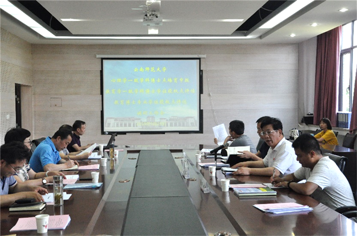 心理学学科带头人陶云教授汇报了心理学一级学科博士学位授权点的培育现状、培育思路和存在的困难;李天凤院长汇报了教育学一级学科博士学位授权点和教育博士专业学位授权点建设工作。汇报内容均是按照国务院学位委员会办公室颁布的博士学位授权点申请条件和评估要求,对标对表地诊断存在问题,明晰思路。