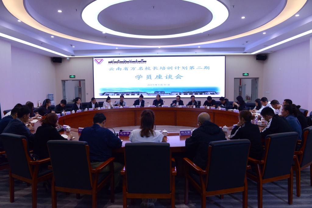 5月31日下午,蒋永文校长在我校国家教师教育教学实验示范中心二区201会议室主持召开了“万名校长培训计划”第二期参训学员代表座谈会。校党委副书记张玮,副校长武友德,党委办公室、校长办公室、党委组织部、党委宣传部、教务处、信息管理处、保卫处、后勤保障处、本科教学质量监控与评估中心、教育科学与管理学院、数学学院、物理与电子信息学院、成人继续教育学院、云南西南联大干部教育学院、万名校长培训计划项目办公室等单位负责人,20名学员代表、7名学委会代表参加了会议。