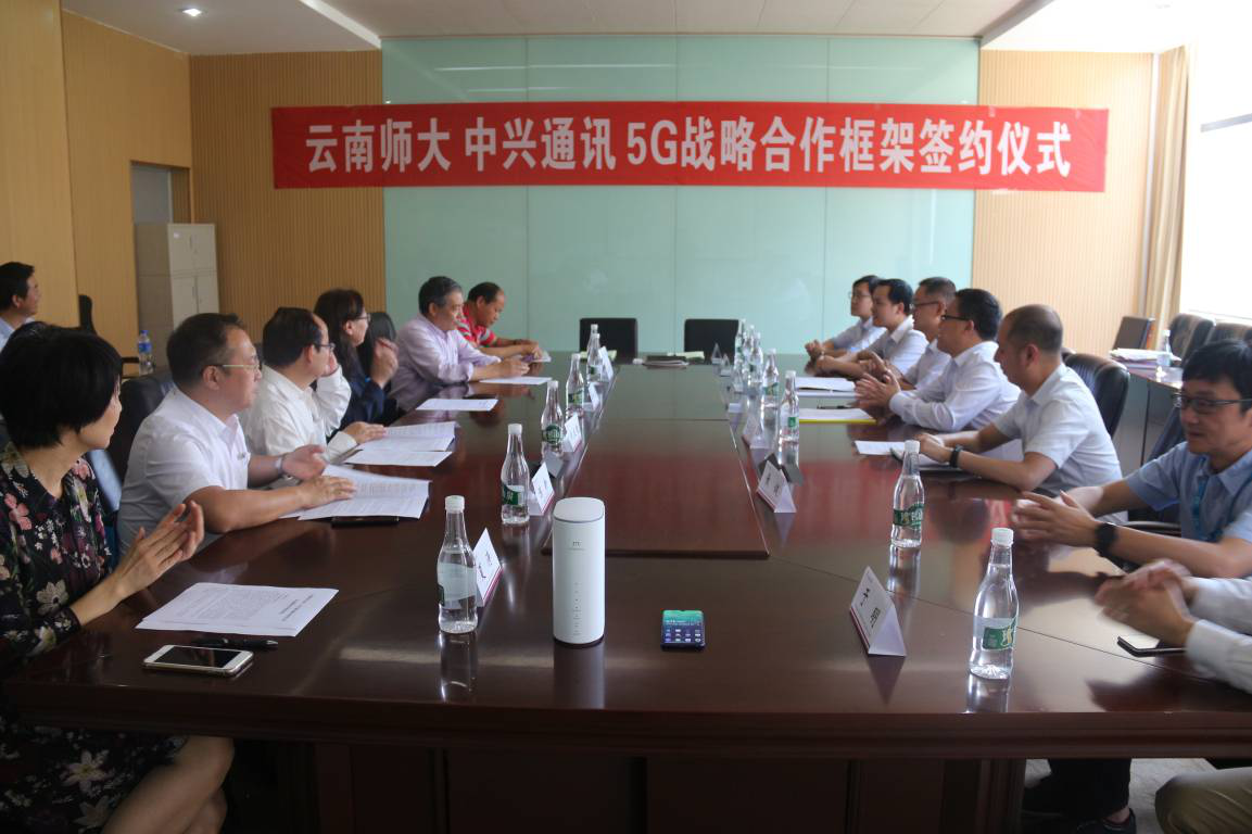 2019年5月30日,我校与中兴通讯股份有限公司在呈贡校区睿智1号楼签署5G战略合作框架协议。中兴通讯股份有限公司昆明办事处副总经理陆勇林、中兴教育管理有限公司西南片区经理蒋仕愚等中兴通讯方面人员8人,我校武友德副校长、郝淑美副校长以及教务处、科研处、信息处、物理与电子信息学院等相关单位负责人出席签约仪式。