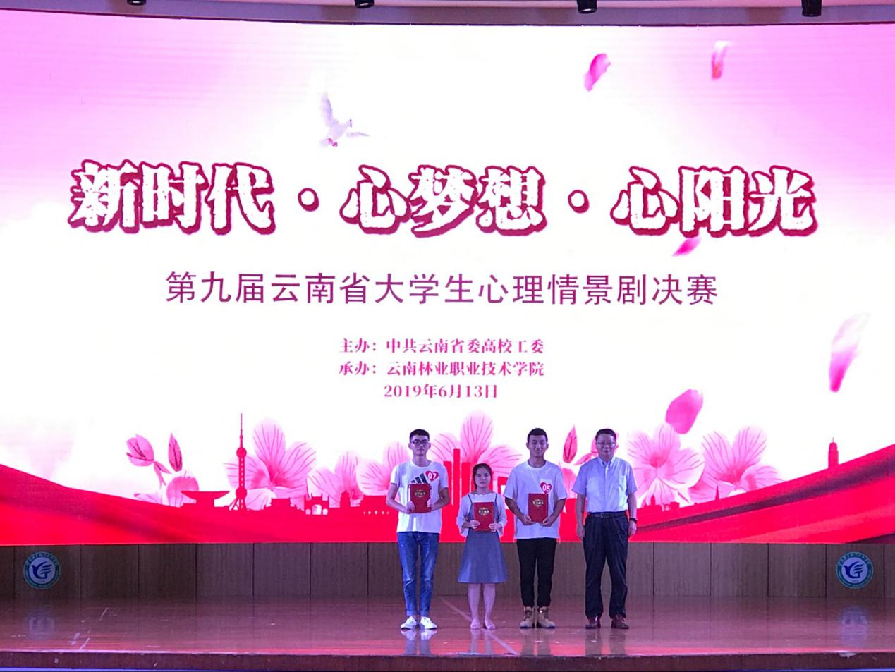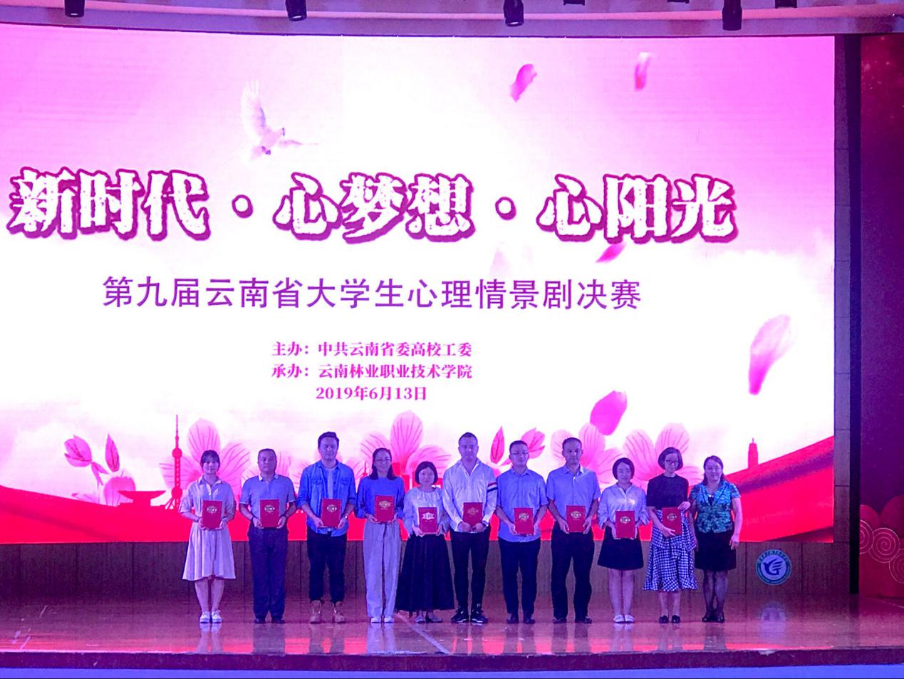 613日下午,由省委高校工委主办的“第九届云南省大学生心理情景剧决赛”在云南林业职业技术学院举行,本次比赛以“新时代·心梦想·心阳光”为主题。经过初赛,全省高校共选送61部作品进入复赛,经专家评审,全省共有10所高校进入决赛。