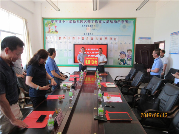 图书捐赠仪式结束后,蒋校长一行前往梁河县教育体育局出席电脑捐赠仪式。云南师范大学向梁河县8所中小学校捐赠100台电脑,用于改善学校办学条件,助力梁河教育扶贫工作。梁河县人民政府副县长景智富,梁河县教育体育局主要领导及相关股室人员共20余人参加捐赠仪式。蒋校长总结回顾了云师大开展“挂包帮、转走访”对口帮扶梁河以来所开展的工作。蒋校长说:“扶贫先扶智,治穷先治愚”, 教育扶贫是脱贫攻坚的精神推动力和智力保障。扶贫是一个长期的过程,云南师范大学能够在教育扶贫中发挥作用,同时教育扶贫也是我们的一种责任。今后云师大将义不容辞地下大力气持续帮扶,助推梁河脱贫攻坚教育精准扶贫工作。