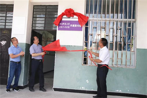 6月13日下午,“云南师范大学、北京人天书店共建图书馆”捐赠暨揭牌仪式在梁河县第一中学举行,蒋永文校长、梁河县人民政府副县长景智富、梁河县教育体育局局长赵光耀、梁河县一中党总支副书记瞿忠远以及学生代表出席了捐赠仪式。云南师范大学联合北京人天书店向梁河一中捐赠价值10万元的图书。今后每年北京人天书店也将捐赠给梁河一中价值10万元的图书,用以更新、补充梁河一中图书馆藏书。