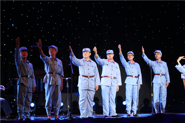 文艺汇演以各班同学自愿报名,以“唱红色歌曲”为参赛要求,经前期广泛动员,积极宣传,初赛复赛,节目整合编排等环节,当晚共有20首经典红色歌曲在演播厅唱响。汇演邀请彭莉、王文军、沈建鑫、李树琼、范跃彬五位老师担任评委。