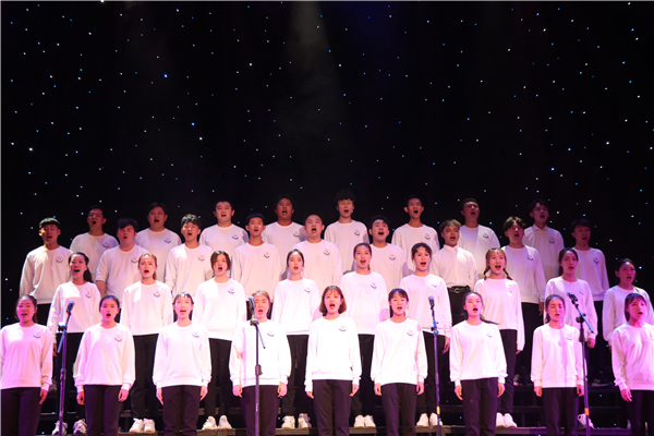 夜幕下的演播厅灯光璀璨,剧场内欢声阵阵、座无虚席。文艺汇演在《西南联大校歌》的合唱声中拉开了序幕。舞台上,合唱团的演唱大气磅礴,服装端庄夺目,寓意救亡图存续薪火,八十余载更迭发展,一代又一代的云师人始终秉承“刚毅坚卓”的校训精神,为国家培养各类人才30余万人,被誉为“红土高原上的教师摇篮”。