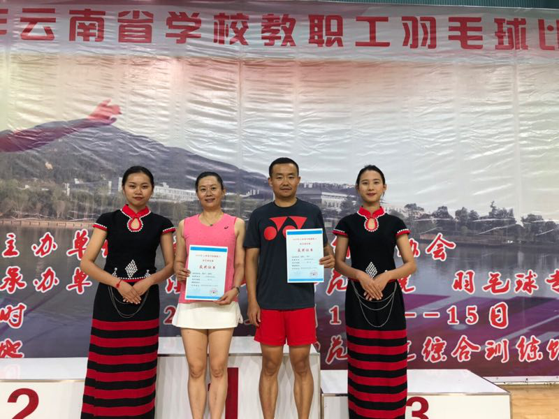 6月16日,由省教育厅主办的2019年云南省学校教职工羽毛球比赛在临沧滇西科技师范学院落下帷幕。云南师范大学教职工代表队奋勇拼搏,斩获金牌2块及非体育教师组男双第5名的好成绩。其中,杨洪、李翼飞获体育组混双冠军,李翼飞、彭波获体育组男双冠军,彭波、马坤获普通教师组男双第五名。