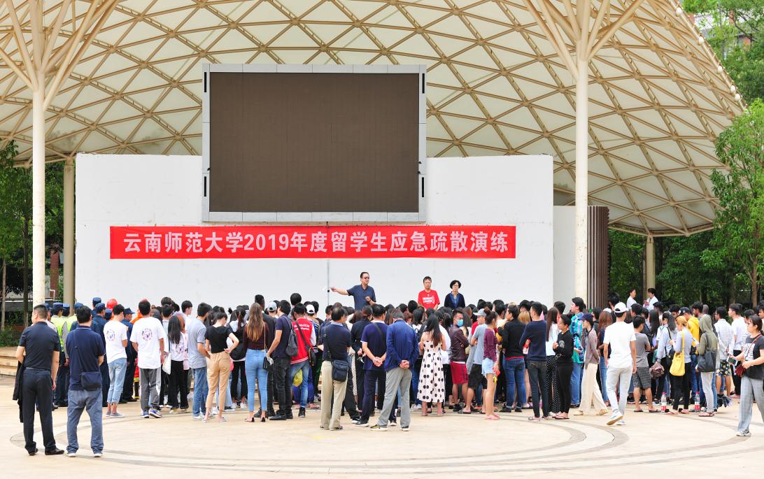 为加强我校留学生安全工作,切实增强留学生防灾减灾意识、提高留学生逃生自救能力和应急能力,着力构建平安和谐校园,云南华文学院联合保卫处、后勤保障处于6月26日顺利开展留学生消防应急疏散演练。校党委副书记李宏,云南华文学院、保卫处、后勤保障处相关负责人,留学生管理相关人员及入住学生公寓留学生300余人参加了此次活动。