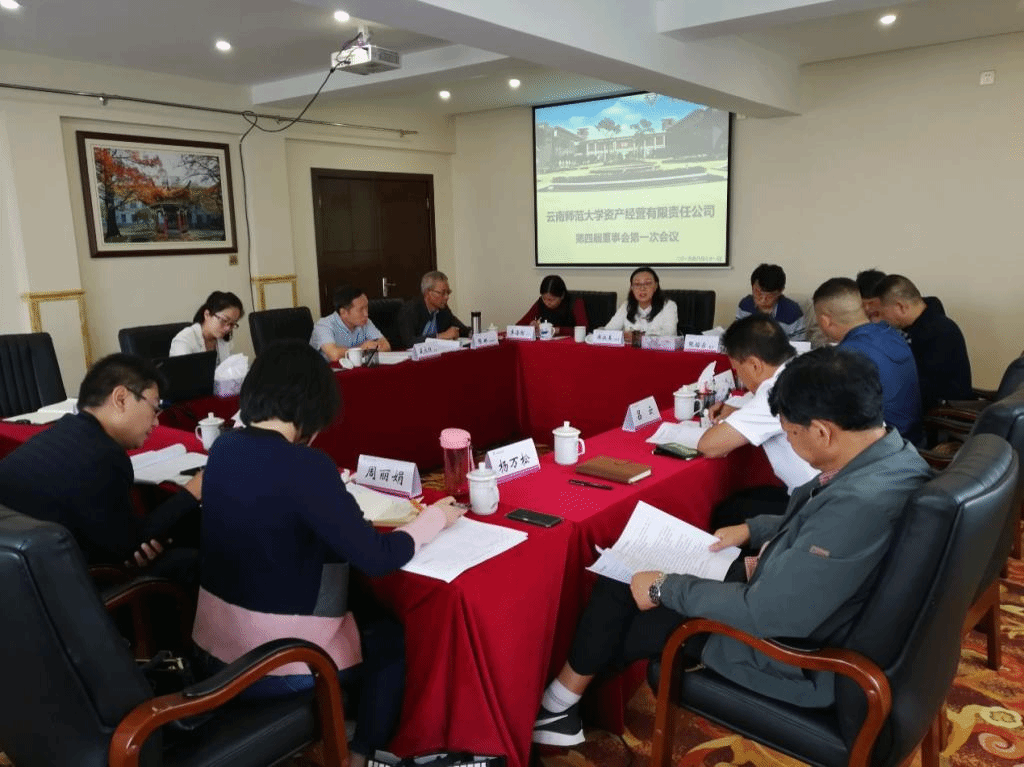会议选举产生了新一届董事会,选举郝淑美副校长担任资产经营公司第四届董事会董事长,会议由郝淑美董事长主持,会议审议通过了《云南师范大学资产经营有限责任公司2018年度经营工作报告》《云南师范大学资产经营有限责任公司2018年度财务工作报告》等共七项议题,参会的董事针对各项议题进行了深入的研究和讨论,提出了相应的意见和建议,并形成了董事会决议。