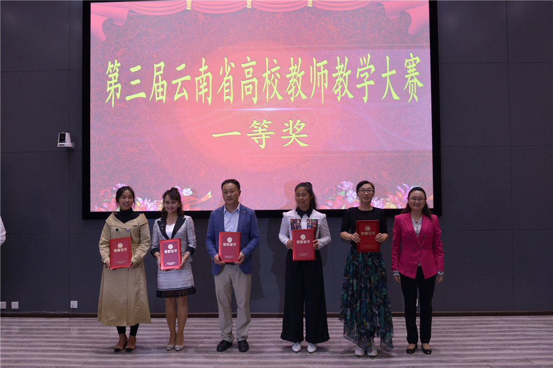 云南省教育厅高教处卢明处长宣读了获奖名单,与会领导为获奖单位和获奖教师颁奖。