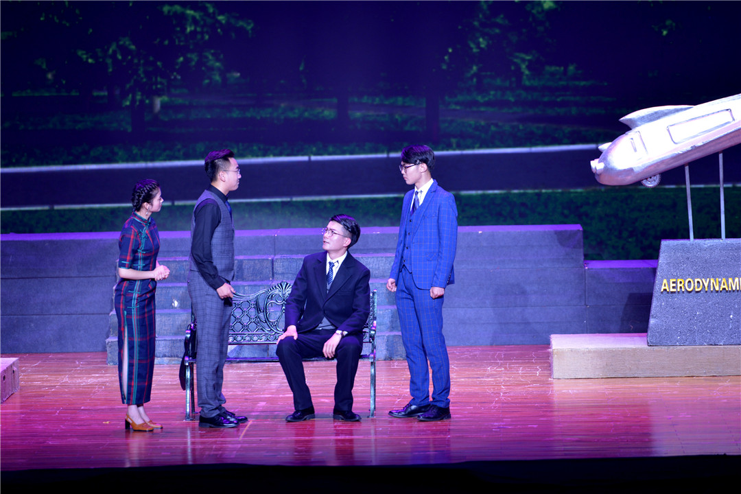 在隆隆的炮火声和《西南联大校歌》铿锵有力的歌声中,演出缓缓拉开序幕。《永怀之歌》高度浓缩了郭永怀一生的学研之旅、精神之旅、情感之旅和奋斗之旅。话剧共分四幕——《绝徼移栽桢干质》《赤子归时抵百师》《英雄仗剑入昆仑》和《留取丹心照汗青》,分别讲述了郭永怀在西南联合大学求学、前往美国深造取得丰硕科研成果、新中国成立后毅然归国来到青海参与“两弹一星”项目研制以及从兰州飞往北京途中以身殉国的四个故事,再现了郭永怀高尚的情操和品质。舞台身临其境的场景和音效,为观众们还原了一幕幕真实的历史画面,让人仿佛回到共和国初期那段艰苦奋斗、舍身创业的激情岁月。演出中,演员们或慷慨独白、或深情抒怀,跌宕起伏的剧情牢牢抓住了观众们的思绪与情感,每一幕结束都迎来观众们的阵阵掌声,大家无不被主人公一片赤诚的报国之心所打动,为一幕幕离愁别恨的家国情怀所感染。