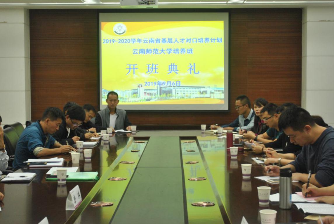 9月6日上午,2019-2020学年云南省基层人才对口培养计划云南师范大学培养班开班典礼在我校呈贡主校区行政办公楼第一会议室举行。校党委副书记张玮、副校长武友德,党委组织部部长蔡金红,成人继续教育学院、教育学部、文学院、数学学院、物电学院、信息学院等相关学院负责人、导师及来自全省9个州市的16名学员参加了开班典礼。典礼由武友德副校长主持。