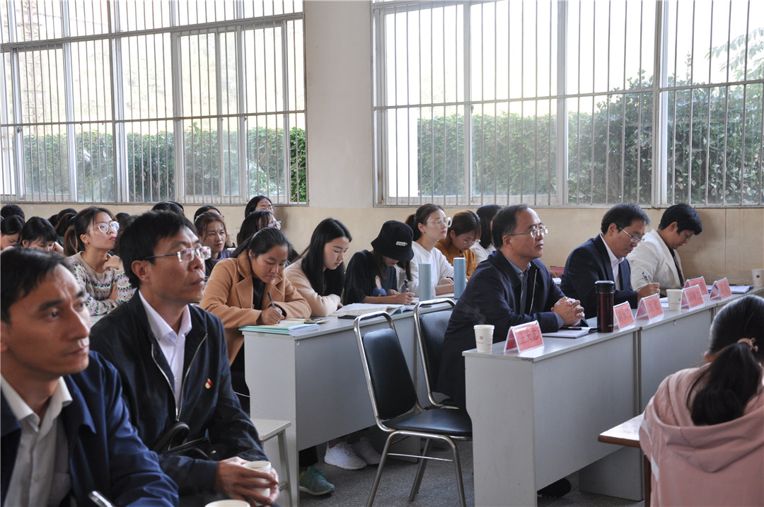 10月25日,蒋永文校长带队到附属易门中学调研,并召开我校实习生座谈会。易门县县长刘世伟、副县长段丽蓉、教育体育局书记曾元、易门中学校长何建平出席座谈会。校办、发展研究中心、教务处、基教集团办公室、文学院、外国语学院、数学学院负责人参加座谈。