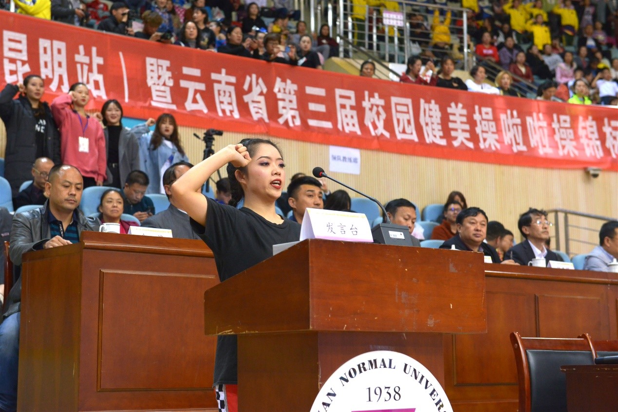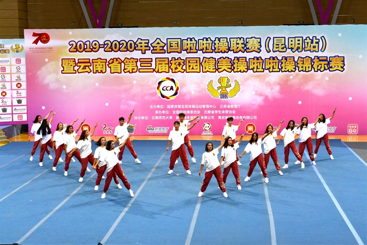 11月15日-17日,由国家体育总局体操运动管理中心、云南省教育厅主办,全国啦啦操委员会、云南省学生体育协会承办,云南师范大学等协办的2019-2020年全国啦啦操联赛(昆明站)暨云南省第三届校园健美操啦啦操锦标赛第十四届全国学生运动会健美操项目选拔赛在云南师范大学主体育馆隆重举行。本届大赛共有来自广东、陕西、四川、甘肃、云南等全国各地的160多支队伍,近4000名运动员参赛。