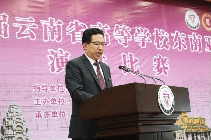 云南师范大学云南华文学院王秀成院长代表云南师范大学致辞,向出席本次比赛的中外贵宾、领导、评委和来自全省30所高校的领队和指导教师、全体参赛学生表示热烈欢迎。他指出,学习通用语言可以走的更远,学习非通语言可以走得更深云南作为“一带一路”建设的交汇点,学习澜湄五国非通用语言区位优势明显,意义重大。东南亚国家作为我国外交的优先方向,东南亚国家非通用语言专业是云南师范大学重点扶持专业,学校发挥作为“云南省高等学校小语种人才培养示范点”、“云南省高等学校东南亚南亚语种人才培养基地”的作用,着力培养具有专业背景和语言优势、国际视野和国际竞争力的应用型高素质东南亚语种人才取得初步实效。作为承办单位,承诺一定按照云南省非通用语教学指导委员会和教育厅要求全力办好比赛,预祝本届东南亚语演讲顺利举行并取得丰硕成果。