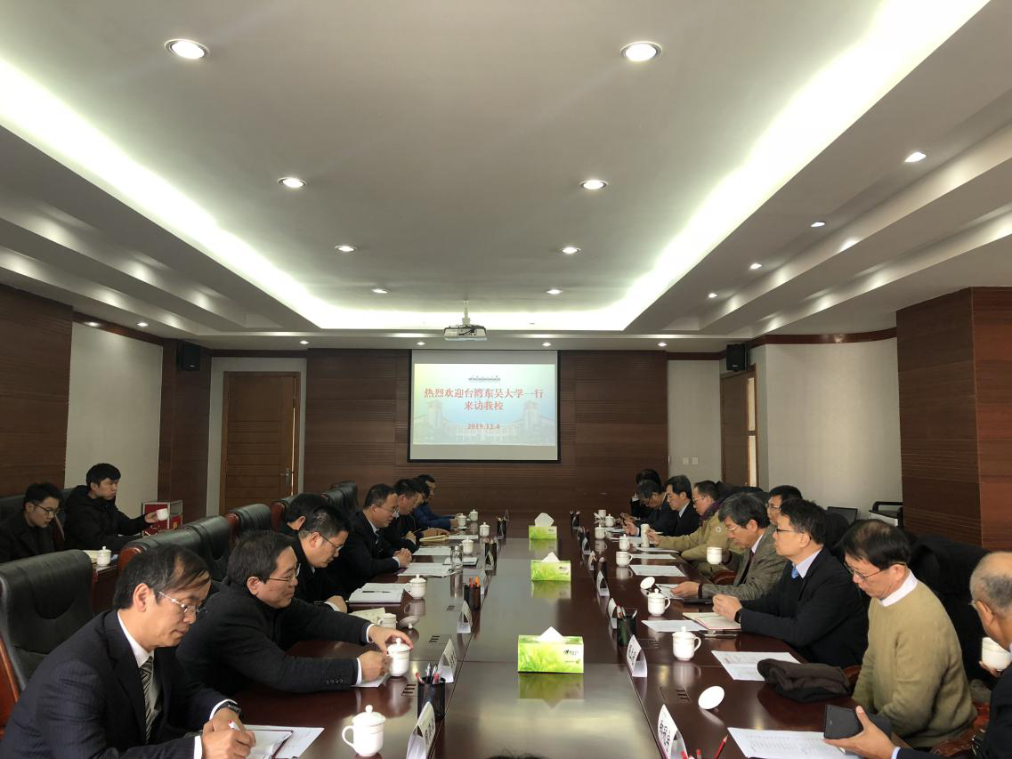 12月4日上午,台湾东吴大学校长潘维大一行十一人到我校进行交流访问。校长蒋永文、副校长刘宗立以及港澳台事务办公室、研究生院、外国语学院、经济与管理学院、哲学与政法学院、生命科学学院、信息学院负责人参加会谈。会议由刘宗立副校长主持。