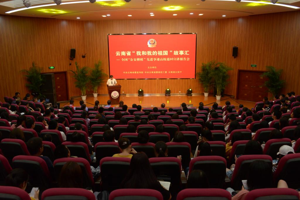 6月20日,由省委宣传部、省委高校工委、省公安厅联合举办的云南省“我和我的祖国”故事会——“公安楷模”先进事迹高校巡回宣讲报告会在我校呈贡校区汇学2栋101报告厅举行。荣获第三期全国“公安楷模”荣誉称号的迪庆州羊拉派出所走进校园,为广大师生作了先进事迹宣讲。我校各学院师生代表共500余人参加报告会。报告会由校党委副书记李宏主持。