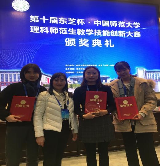 12月24-27日,第十届东芝杯全国师范院校理科师范生教学技能创新大赛决赛在贵州师范大学举行,本次比赛由教育部及东芝(中国)有限公司主办,贵州师范大学承办。全国50所高校共选送150名本科生(数学、物理,化学各50名)参加大赛,3个比赛学科组分别设一等奖1名、二等奖3名、三等奖6名。我校数学学院李雪艳、物理与电子信息学院杨玉洁、化学化工学院赵欣旖三位同学代表学校参赛。