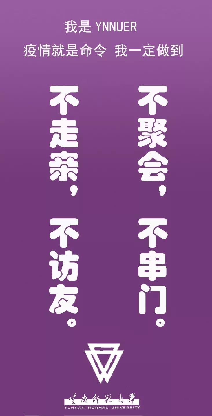 为坚决贯彻落实党中央、国务院和省委、省政府决策部署,认真做好新型冠状病毒肺炎疫情防控的社会宣传工作,营造同舟共济、共克时艰、坚决打赢疫情防控阻击战的社会氛围,现结合疫情发展最新形势和学校实际,向全校师生发出号召——疫情就是命令,我一定做到!