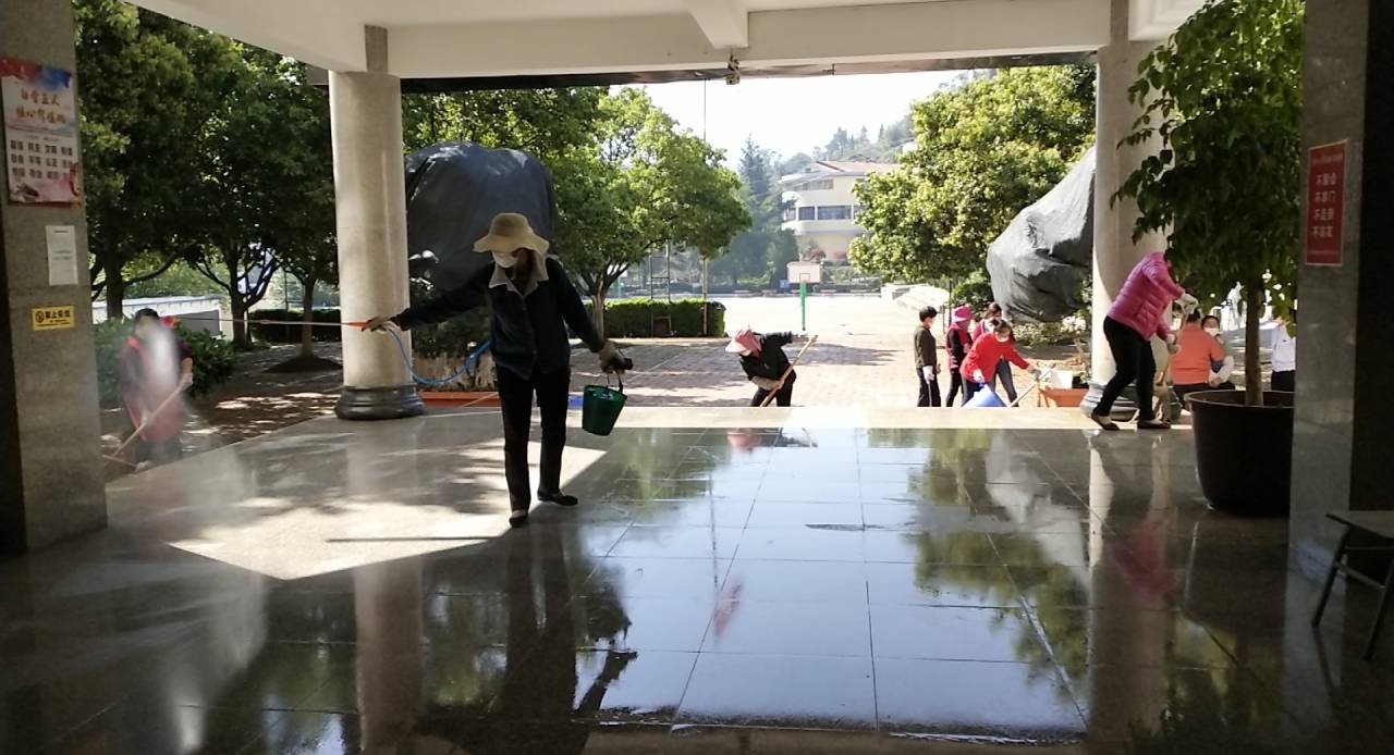 五是开展爱国卫生运动,做好校园消毒工作。学校开展爱国卫生运动,学校发出《新型冠状病毒感染的肺炎疫情防疫工作倡议书》,倡议全校师生利用2月18日开展为期一天的居家环境整治和消毒行动,请全校师生积极参与,并坚持做好每天居家消毒工作。认真做好校园消杀工作,重点消杀教师办公场所、教室、学生宿舍、食堂、小卖部、教职工宿舍楼层、厕所及教学辅助用房等人群聚集的场所。