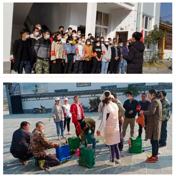 在疫情防控最关键、最吃劲的阶段,我们腾冲市勐蚌社区的大学生成立了勐蚌社区“青年抗疫志愿队”,召集党员和团员参与到疫情防控的工作中。志愿队成立的第一天便行动起来,对村内主干道进行消毒。在这个特殊的时期,大家都团结一心,积极地做着有关疫情防控的基础工作。