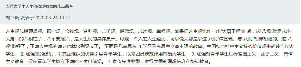 为深入贯彻落实习近平总书记系列重要指示精神和党中央决策部署,按照中共教育部党组关于统筹做好新冠肺炎疫情防控和教育改革发展工作的部署要求,引导高校辅导员深刻认识疫情防控背景下加强思想政治工作的重要性紧迫性,增强新形势下做好学生思想政治教育工作的能力,由教育部主办、高校思想政治工作队伍培训研修中心承办,依托国家行政教育学院“高校辅导员网络平台”组织实施,以“共抗疫情显担当,爱国力行育新人”为主题的全国高校辅导员网络培训示范班于3月23日开班,培训周期至4月30日。我校148名辅导员在抓好疫情防控及日常工作的同时积极参加培训学习。