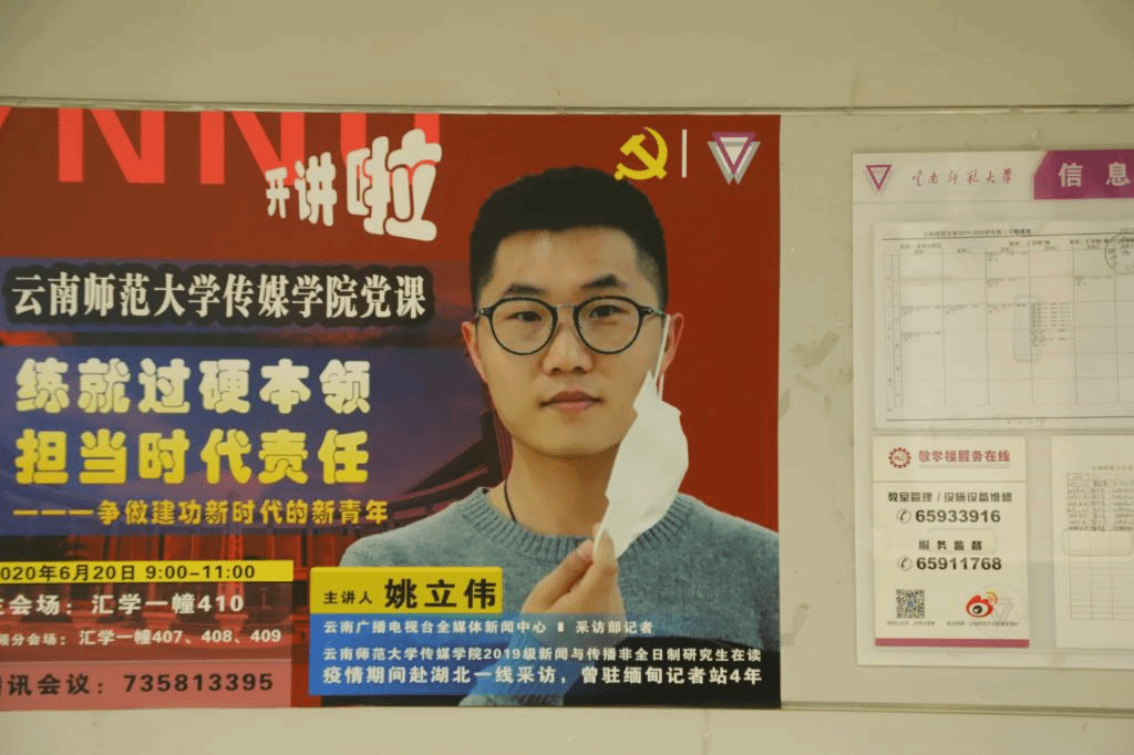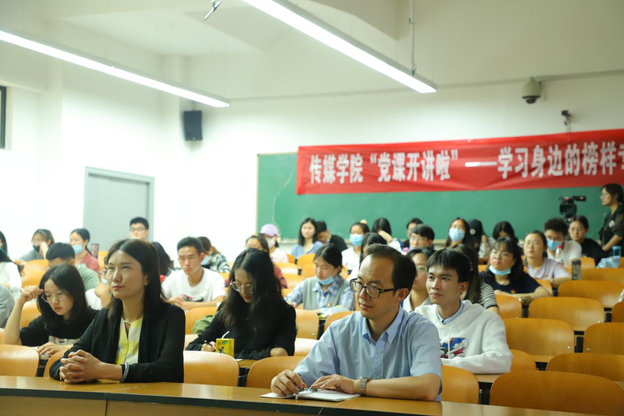 “把疫情一线的温暖和正能量、把那些鼓舞人心的事迹好好报道出来,这是我作为一名记者最大的想法,更是我作为党员的初衷。”6月18日上午,传媒学院在呈贡主校区汇学一栋410教室举行“党课开讲啦”——学习身边的榜样专题党课,邀请传媒学院2019级非全日制研究生、云南广播电视台全媒体新闻中心记者姚立伟同志担任党课主讲人,以《练就过硬本领,担当时代责任》为主题讲述了疫情期间随云南省援助湖北咸宁医疗队奔赴当地采访的经历与感悟。校党委副书记李宏,传媒学院党委书记魏红、副书记马春雨,以及传媒学院200余名党员、积极分子一起参加了党课,党课由传媒学院新闻系教师党员柳盈莹主持。为了严格执行疫情防控要求,本次党课除了主会场410教室外,还设置了三间教室作为分会场,观看线上直播。
