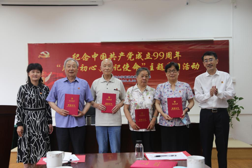 活动在全场人员齐唱中华人民共和国国歌声中拉开了帷幕,退休老党员杨文泽同志带领在场党员重温入党誓词。离退休工作处副处长李萍同志宣读了《表彰决定》。校党委副书记张玮同志向荣获2019年度“规范化建设达标党支部”、优秀党员、优秀党务工作者及“抗疫情 抒感怀”优秀作品获奖者颁发荣誉证书,张旭和张运贵两位党员作为受表彰人员代表作了交流发言。
