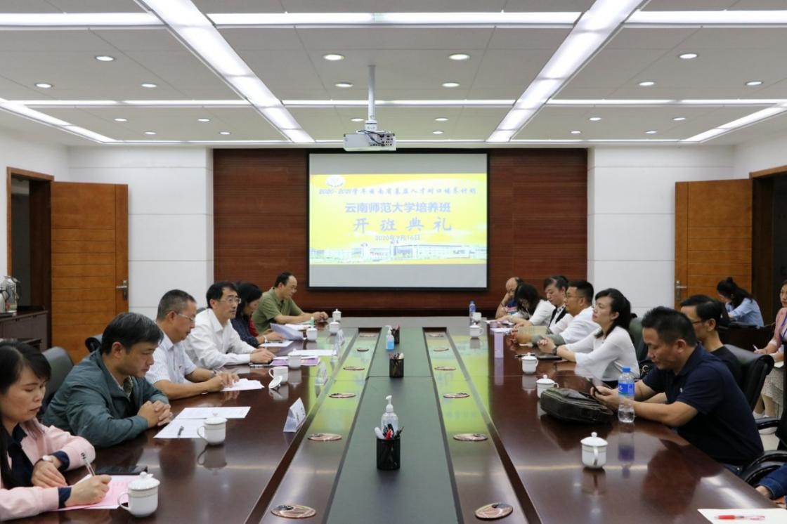 9月16日中午,2020-2021学年云南省基层人才对口培养计划云南师范大学培养班开班典礼在我校呈贡主校区行政办公楼第一会议室举行。校党委副书记张玮,党委组织部部长蔡金红,继续教育学院、教育学部、文学院、历史与行政学院、外国语学院、音乐舞蹈学院、体育学院、数学学院、物理与电子信息学院、化学化工学院、信息学院和地理学部负责人、导师及来自全省10个州市的22名学员参加了开班典礼。典礼由党委组织部蔡金红部长主持。