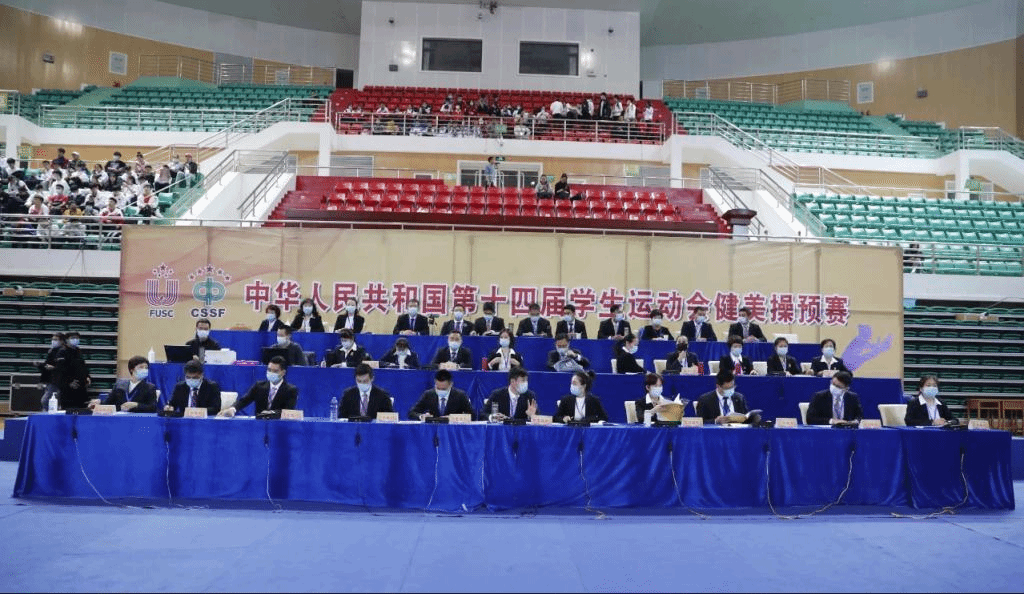 由教育部、国家体育总局、共青团中央主办,中国大、中学生体育协会协办,河北省教育厅、唐山市教育局、迁安市人民政府承办的中华人民共和国第十四届学生运动会健美操预赛于2020年10月24日至31日在河北省唐山迁安市举行。本次比赛有来自全国各省(自治区、直辖市)的21支大学代表队、19支中学代表队,共计360余名运动员、教练员参加。获得预赛前七名的队伍进入明年学运会决赛,竞争激烈。