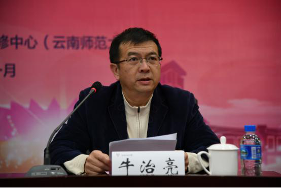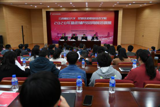 为深入学习贯彻习近平新时代中国特色社会主义思想,全面贯彻落实全国、全省高校思想政治工作会议和全国教育大会精神,进一步推动学校思想政治工作专门力量建设,切实培养一支高素质、高水准的辅导员工作队伍,推进辅导员队伍专业化职业化建设。云南师范大学和昆明铁道职业技术学院于2020年11月18日至21日联合举办2020年新进辅导员岗前培训班,11月18日上午在云南师范大学举行开班仪式。云南师范大学党委副书记李宏、副校长牛治亮,昆明铁道职业技术学院党委书记张志宏、副院长谢文,云南师范大学学生处、研究生处、心理健康教育咨询中心办公室,昆明铁道职业技术学院人事处、学生处负责人出席了开班仪式。云南师范大学76名新进辅导员、昆明铁道职业技术学院48名辅导员和班主任参加了开班仪式。开班仪式由云南师范大学副校长牛治亮主持。