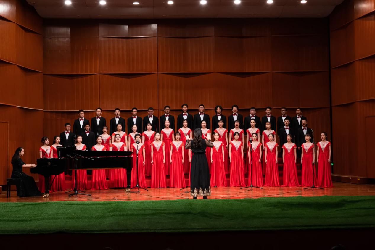演出在合唱《社会主义核心价值观》中拉开序幕。同学们以饱满热情深情地演绎了《毛主席的恩情比山高比水长》《延安颂》《共和国之恋》《我和我的祖国》《把一切献给党》等歌曲,让现场观众深刻感受了青年一代的浓浓爱国情怀。