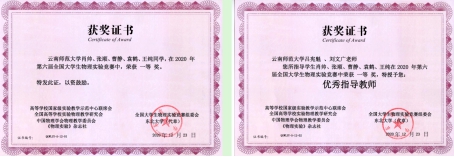 由国家级实验教学示范中心联席会、全国高等学校实验物理教学研究会、中国物理学会主办,东北大学承办的第六届全国大学生物理实验竞赛于2020年7月至12月期间举行。受疫情影响,本届竞赛以线上比赛的形式进行。经过初审、网上评审、复赛答辩环节,我校物理与电子信息学院物理学专业本科生肖帅、张顺、曹静、袁鹤、王纯五位同学自主设计的“利用智能手机和自制复摆测量重力加速度”作品荣获创新类一等奖,指导教师吕宪魁、刘文广被评为“优秀指导教师”。