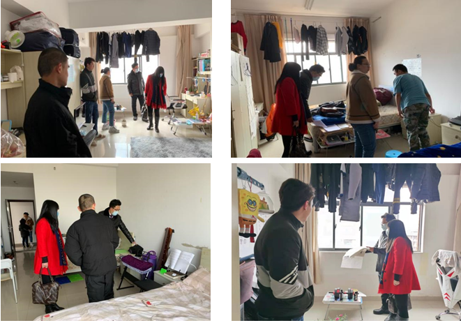 云南华文学院现有6名中外学生因疫情原因假期留宿东区十栋留学生公寓,其中中国研究生1名,来自肯尼亚、缅甸、印度尼西亚三个国家的留学生5名。王秀成院长、常数副书记、吴文莉副院长深入学生宿舍,仔细检查了学生住宿、用水用电等状况,就用电安全、防火防盗、疫情防控及假期在校的其它注意事项提出了要求,并亲切询问学生在生活学习上的困难,表示同学们如遇困难可及时通过学院辅导员、班主任老师进行反映,也要求辅导员老师定期与留校学生进行沟通,及时为学生排忧解难。