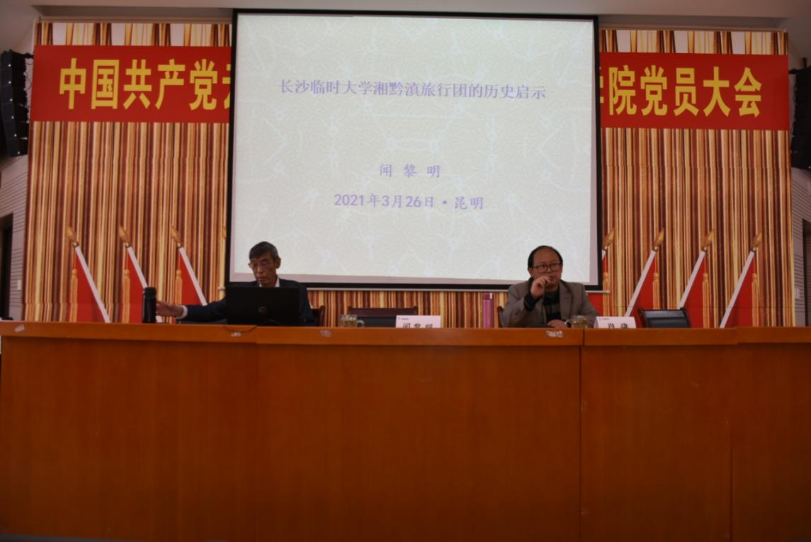 在建党百年之际,为讲述西南联大先辈艰苦卓绝的奋斗故事,传承弘扬中国共产党的革命精神,历史与行政学院于3月26日下午在明德3号楼101报告厅组织开展了《长沙临时大学湘黔滇旅行的历史启示》专题讲座。讲座由中国社会科学院闻黎明教授主讲,历史与行政学院历史系主任肖雄老师主持。