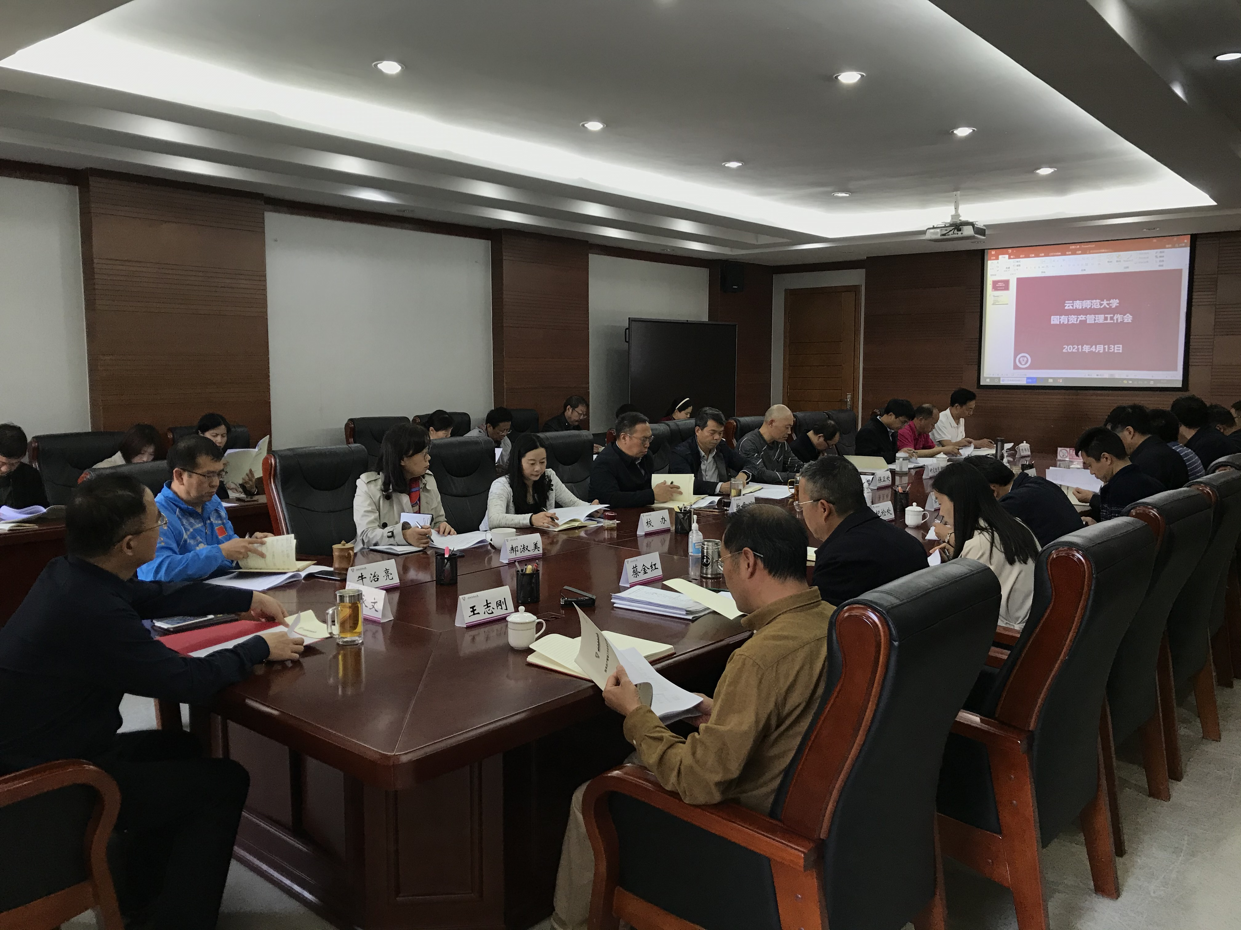 2021年4月13日上午,学校国有资产管理委员会主任蒋永文校长在呈贡校区行政楼第三会议室主持召开学校国有资产管理工作会,校纪委书记王志刚,副校长牛治亮、蔡金红、郝淑美,学校国有资产管理委员会成员单位主要负责人参加会议。