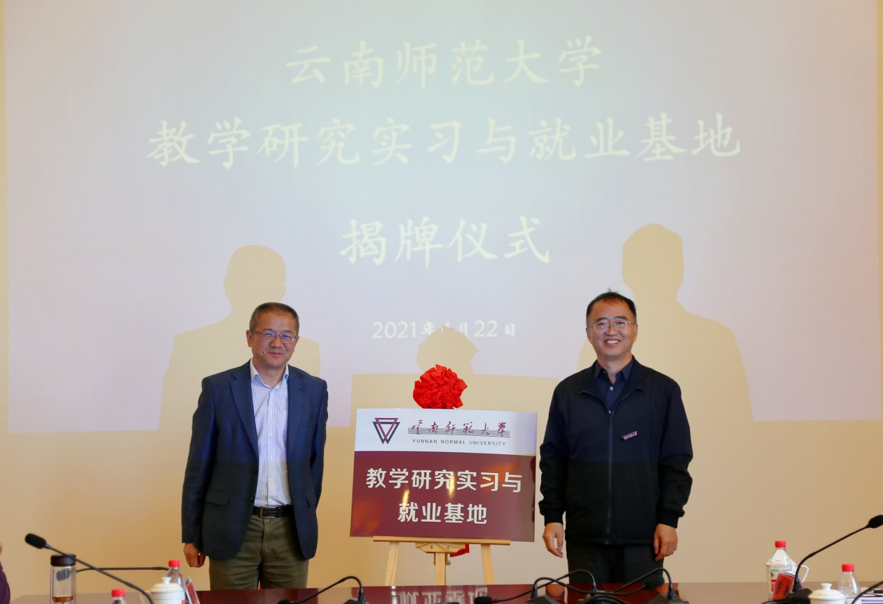 会上,两校还签署了“教学研究实习与就业基地”合作协议,蒋永文校长与张祖武书记共同为“云南师范大学教学研究实习与就业基地”揭牌,两校有关职能部门的负责同志围绕2021年对口支援计划,尤其是师资队伍建设、人才培养、就业创业、基础教育等具体工作对接方面进行了深入的座谈交流。
