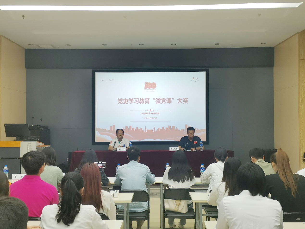 为创新党员教育形式,通过大学生讲微党课的方式,助推党史学习教育入心入脑、走深走实,5月13日下午,体育学院在实训大楼举办“传承红色基因 培育时代新人”党史学习教育“微党课”大赛。学院党委书记朱黎、党委副书记戴建友、各学生党支部书记出席比赛。