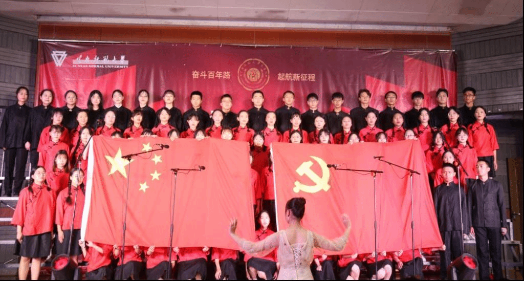 庆祝中国共产党百年华诞,弘扬爱国爱党精神,5月13日晚,文学院在汇文三报告厅举行“颂党恩,跟党走”合唱比赛。文学院党委书记毛志荣、昆明市五华区统战部常务副部长王慧卿、文学院党委副书记石安银、文学院副院长徐俊六、李开书老师、汪玉梅老师等9位老师担任本次比赛的评委,比赛邀请了五华区2021年统战干部专题研讨班的各位领导老师等嘉宾。