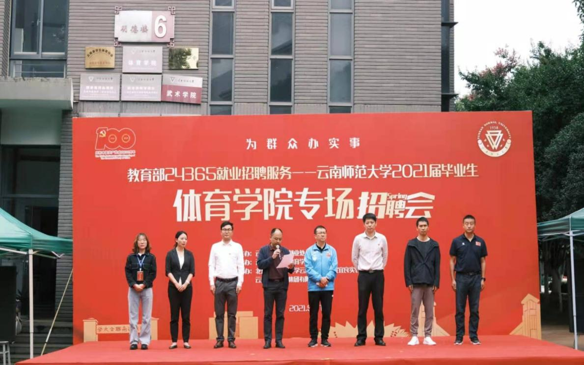 5月27日,由我校就业处主办,体育学院承办,北京航空航天大学云南创新研究院宜良实验学校、云南助农发展集团有限公司协办的“我为群众办实事”教育部24365就业招聘服务——云南师范大学2021届毕业生体育学院专场招聘会在明德六号楼举行,云南省大中专毕业生就业服务中心周舟主任,校党委委员、副校长牛治亮,就业处处长李红以及来自市内外的70余家用人单位代表及体育学院2021届毕业生参加了活动。