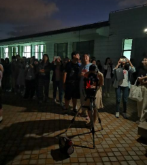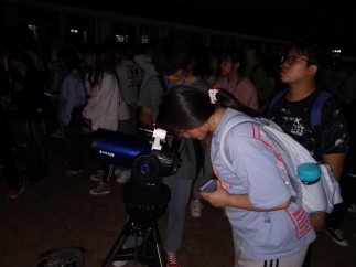 当晚,物理与电子信息学院开放了拥有40厘米口径天文望远镜的教学天文台及天象馆,调试好6台折射式天文望远镜,供大家前来观测,同时,梁红飞、易庭丰、张皓晶老师在活动现场指导和讲解。晚8时20分,云开月朗,月食与“超级月亮”的天文现象终于出现,师生们在天文望远镜前有序列队,近距离目睹这难得一见的天文奇观,当天参加活动的师生达数百人。
