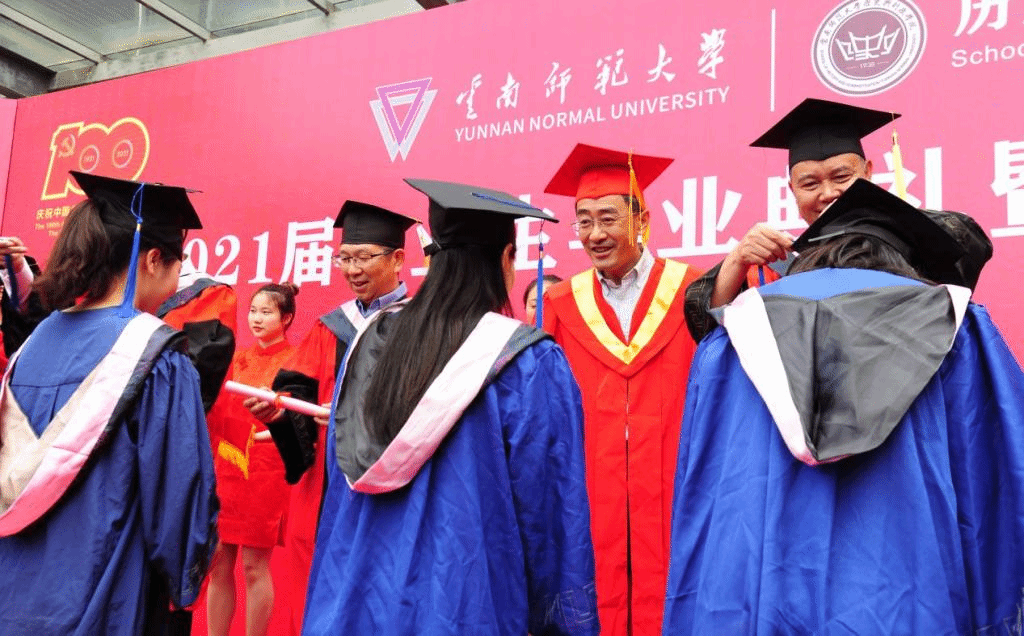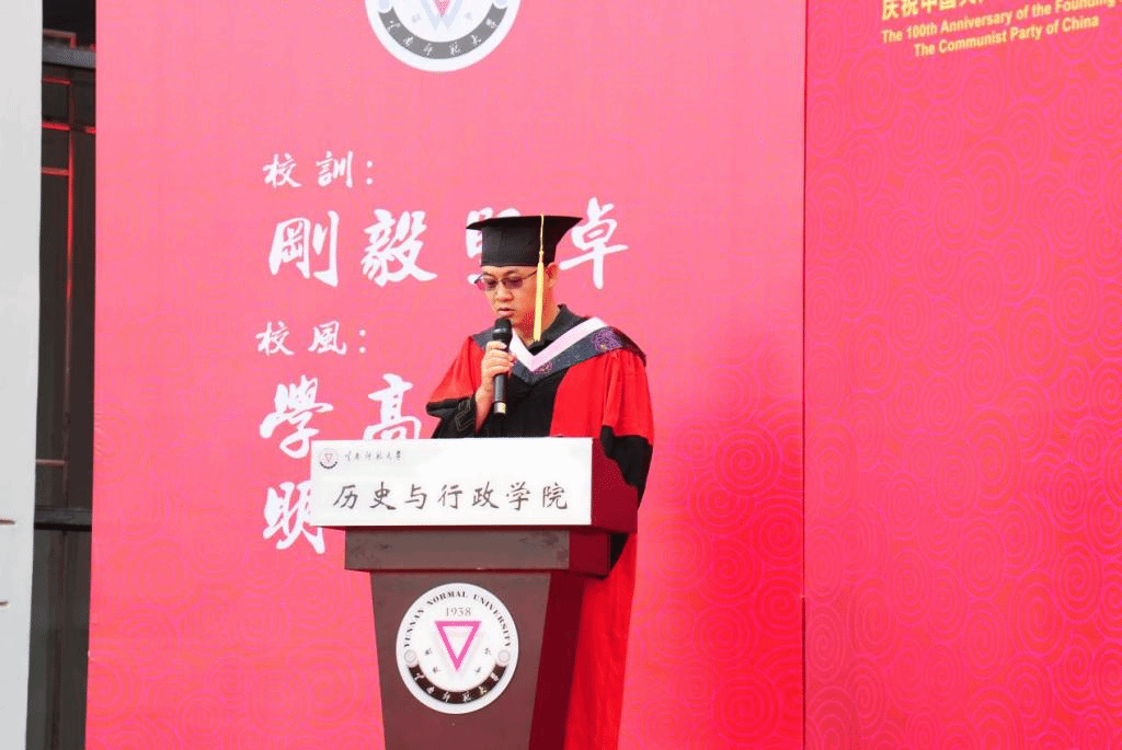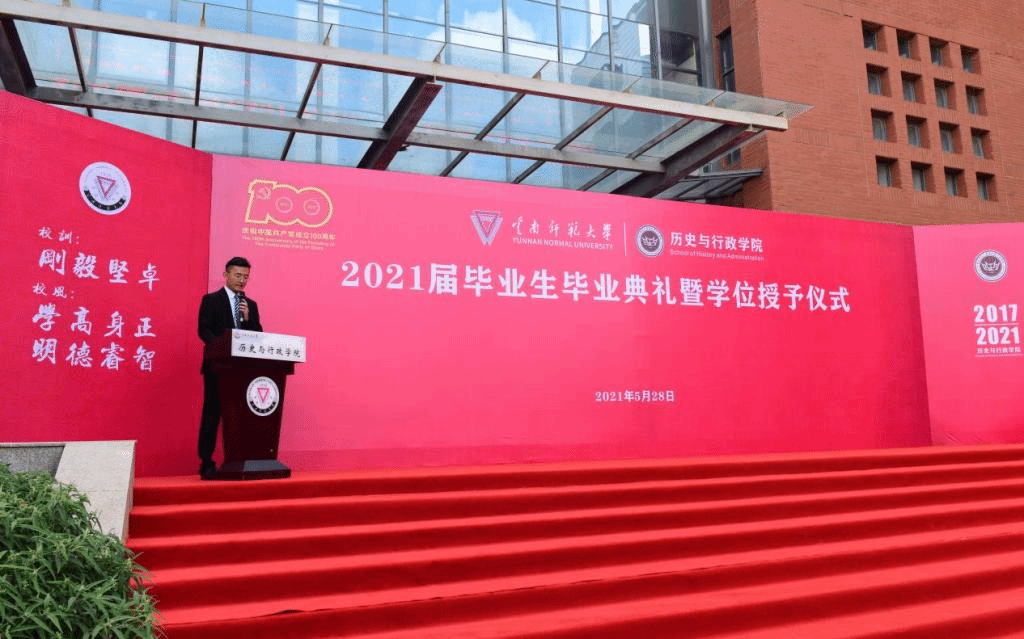 庄严肃穆的国歌声拉开毕业典礼序幕。校党委张玮副书记致辞,向毕业生们表示祝贺,他指出建党100年和新中国成立72年来,我们的祖国逐步迈向繁荣与富强,这样的时代为青年投身国家的建设和社会的发展搭建了广阔的舞台,广大毕业生们要勤学,下得苦功夫,求得真学问;要修德,加强道德修养,注重道德实践;要明辨,善于明辨是非,善于决断选择;要笃实,扎扎实实干事,踏踏实实做人。他希望同学们坚守理想、坚定信念,在将来的学习、工作和生活中牢记青年知识分子的使命,做西南联大精神的传承者,做中国共产党伟大事业的开拓者,做社会主义核心价值体系的传播者,做中华民族传统美德的弘扬者,为国家的发展和民族的振兴贡献力量。