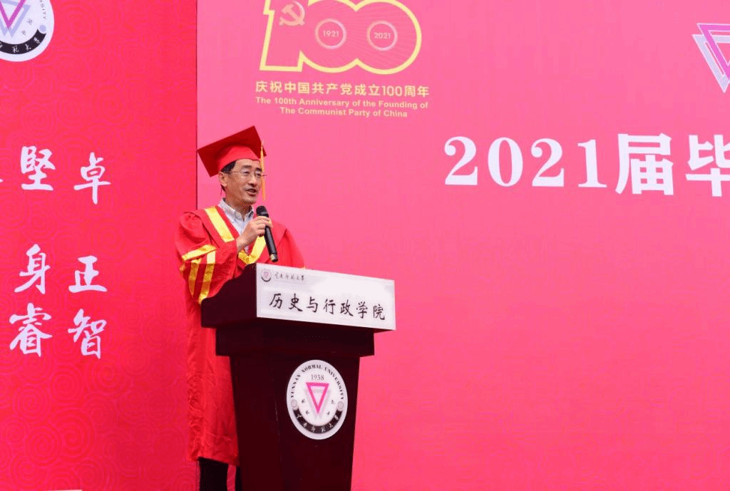 5月27日上午,历史与行政学院于明德楼三号楼前举行了2021届毕业生毕业典礼暨学位授予仪式。校党委张玮副书记,历史与行政学院余明九书记、邹建达院长、杨栋会副院长、保跃平副院长,学院学位评定委员会委员白云教授、硕士生导师张志国副教授、毛丽娟副教授,丁琼博士、闫文仙博士、2021届毕业班班主任及340余名毕业生参加了毕业典礼。毕业典礼由历史与行政学院党委副书记徐振坤主持。