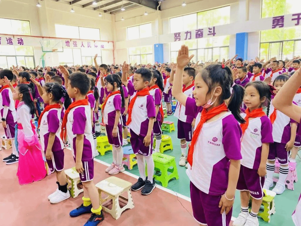 云南师范大学附属小学正式启动“红领巾争章”活动暨一年级第一批少先队员入队仪式。