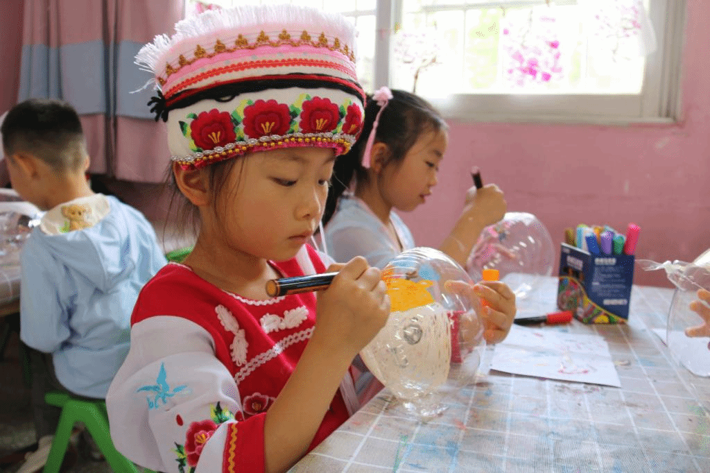 云南师范大学附属盘龙幼儿园通过精心创设的一系列室内室外丰富多彩的游戏区,开展美劳DIY活动,让孩子们感受节日的气氛,度过一个轻松、愉快的节日。