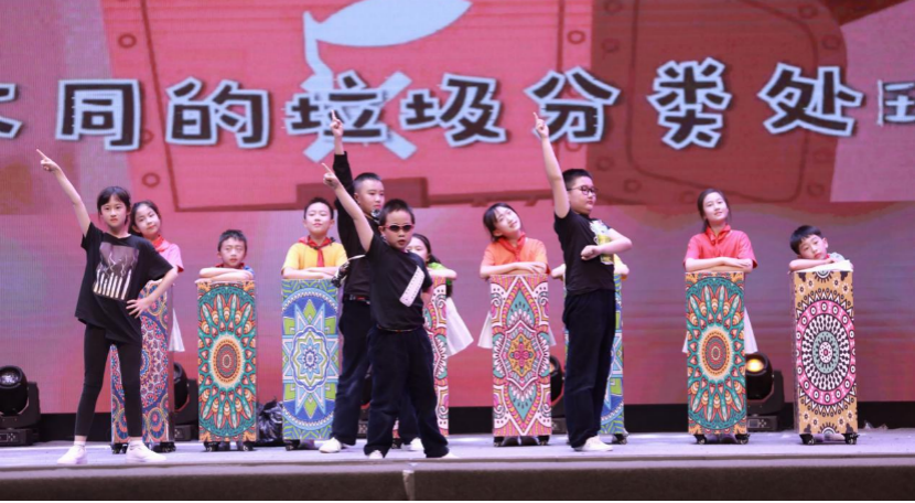 云南师范大学附属小学民乐团合奏旋律悠扬的曲目,充满童趣的情景剧《垃圾分类作用大,生物多样靠大家》,倡议同学们为即将举办的“生物多样性大会”做力所能及的事。