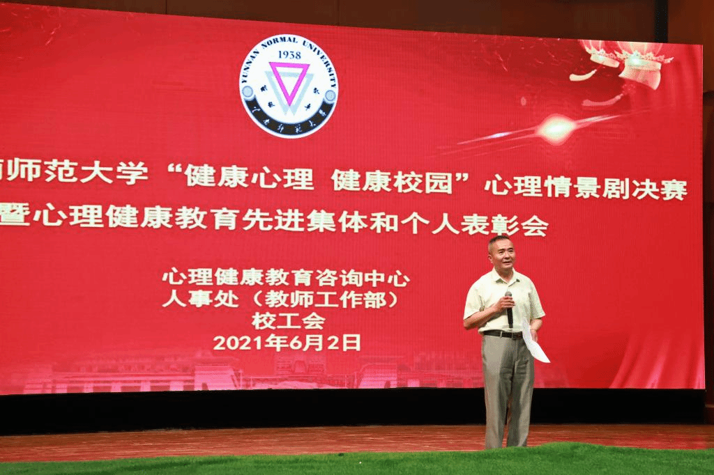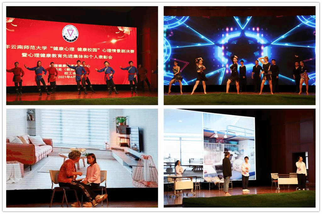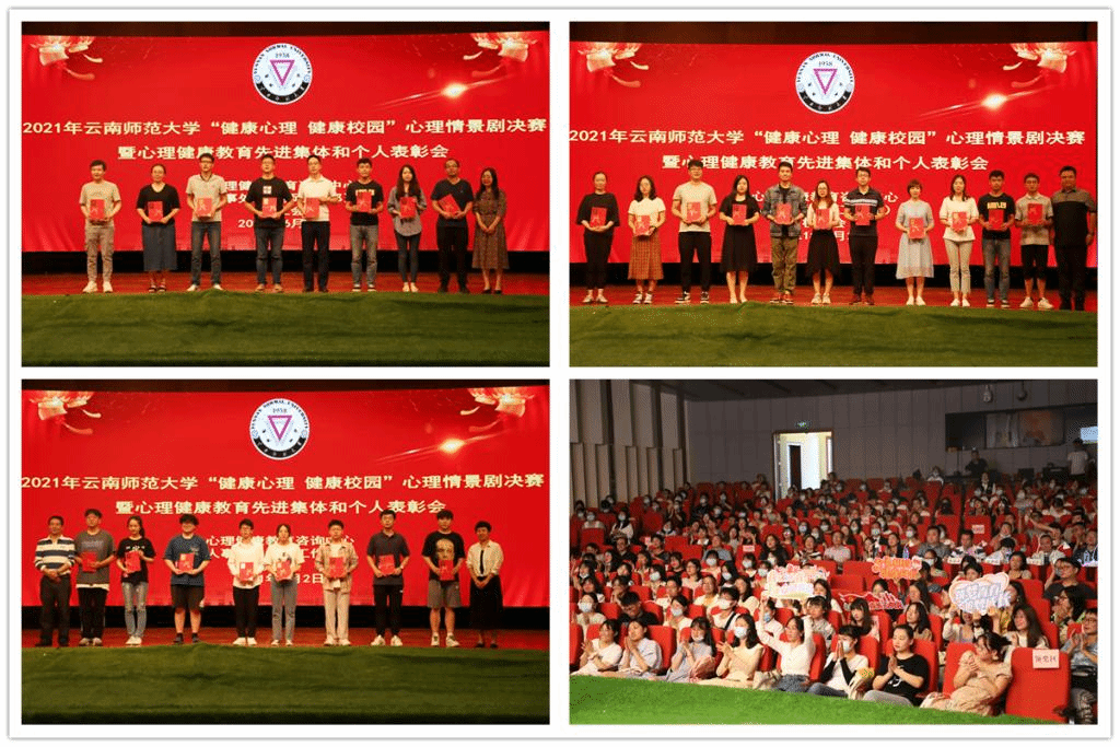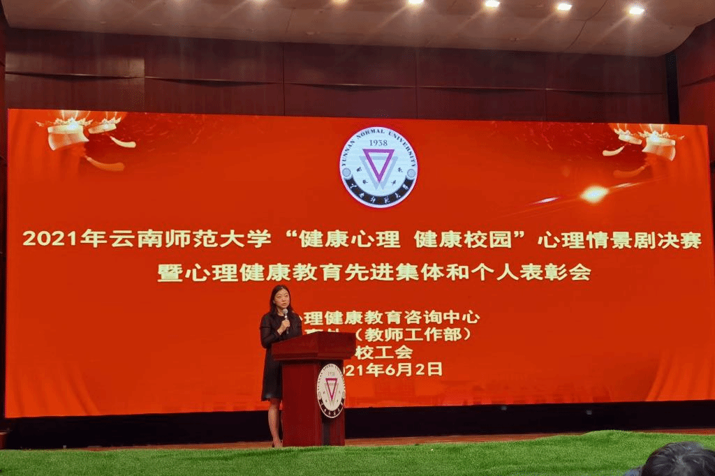 为深入学习贯彻习近平新时代中国特色社会主义思想,全面贯彻落实全国教育大会、全国高校思想政治工作会议精神,不断提升大学生心理健康素质,助力学生健康发展,6月2日下午,我校举行2021年“心健康 心成长 心向党”心理情景剧决赛暨心理健康教育先进集体和个人表彰会,本次活动由心理健康教育咨询中心、人事处(教师工作部)、校工会联合开展,云南省委教育工委学生工作部、校医院、学生处、各学院(学部)师生代表近500余人参与了本次活动。昆明理工大学学生处副处长宋熹,云南师范大学教育学部赵建新教授、校团委书记郑伟俊、研究生处处长黄海涛、音乐舞蹈学院党委书记和红军、马克思主义学院党委书记张健、心理健康教育咨询中心办公室主任尚云担任本次比赛的评委。