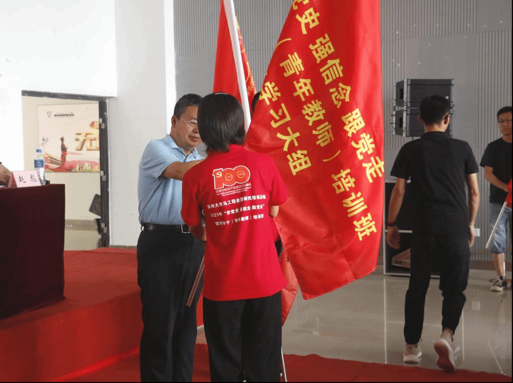 蔡金红副校长在开班典礼上讲话并授旗,对学员提出三点希望和要求:一是要坚定理想信念,加强理论素养,做一名马克思主义的坚定拥护者;二是要勤奋刻苦学习,坚持知行合一,做一名马克思主义的勇于实践者;三是要争当先锋模范,甘于奉献社会,做一名马克思主义的积极传播者。