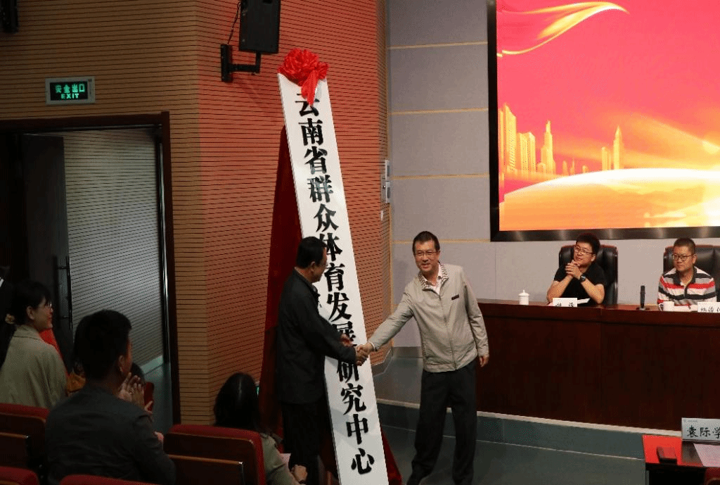 6月10日下午,云南省群众体育发展研究中心揭牌仪式在我校呈贡校区西边中心报告厅举行。云南省体育局张晓憬副局长与我校牛治亮副校长代表双方签署了《云南省群众体育发展合作协议》并为云南省群众体育发展研究中心揭牌。云南省体育局群众体育处处长吕汇慧,云南省体育局相关处室、直属单位负责人,云南省群众体育发展研究中心部分受聘专家以及我校校办、对外合作处、体育学院领导班子及师生代表参加了此次活动。体育学院聂真新院长主持活动。